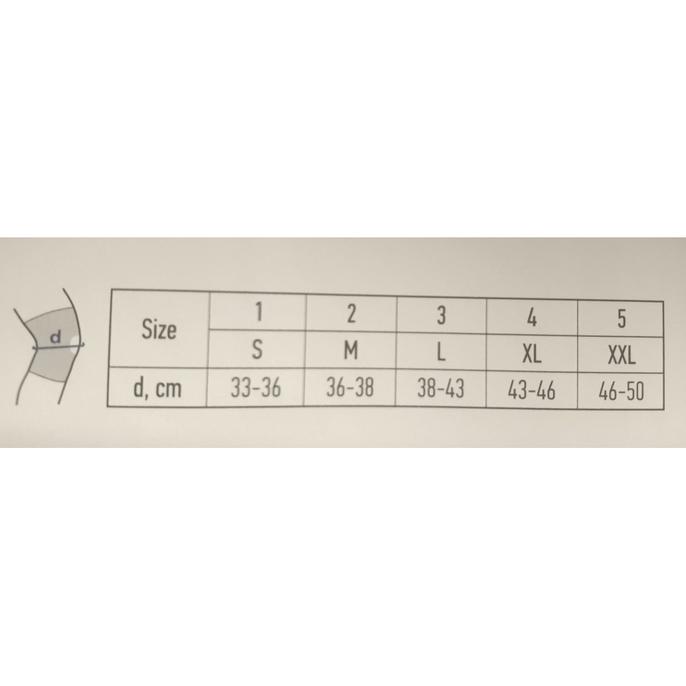 aanbevolen als preventief medisch hulpmiddel voor fixatie, bescherming en ondersteuning van de kniebotten, banden en weke delen. Beschikt over thermische en micromassage-invloed. Geeft fixatie en matige compressie, verbetert de bloedtoevoer stimuleert uitwisselingsprocessen in weefsel in de huid en onderhuidse vetcellen en spieren. Wordt gebruikt voor de periode van revalidatie na operaties op het gebied van een kniegewricht. Beschermt tegen verschillende trauma’s van een gewricht bij stoten en vallen, bij sporten en lichamelijke activiteiten.